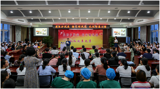 为深入贯彻落实市委市政府创建全国文明城市攻坚战决策部署,推进医院精神文明建设,进一步提升医护人员的道德水平和文明礼仪素养,全面展现医护人员新风貌新形象。5月11日晚,我院举办了“展医护风采扬文明风范”礼仪形象比赛,来自门诊部等14支代表队参加了比赛。